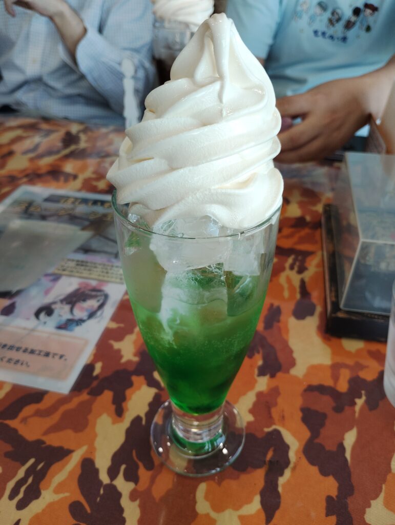 メロンフロートを飲む。