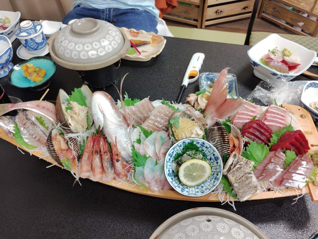 んじゃあそこの船盛も食べてみたいってことで宿の一つは『大勘荘』に決まり。