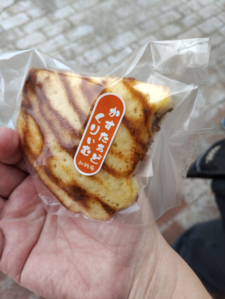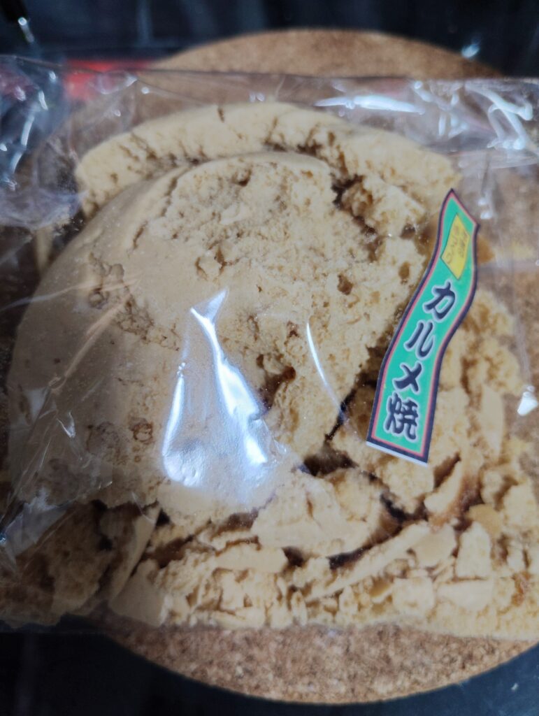 初日に買ったカルメ焼きは砕け散ってた・・・。